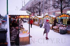 Рядом с торговыми прилавками в ярмарочных домиках ежедневно с 12.00 до 22.00 часов можно будет купить продукцию общественного питания и товары новогоднего ассортимента.