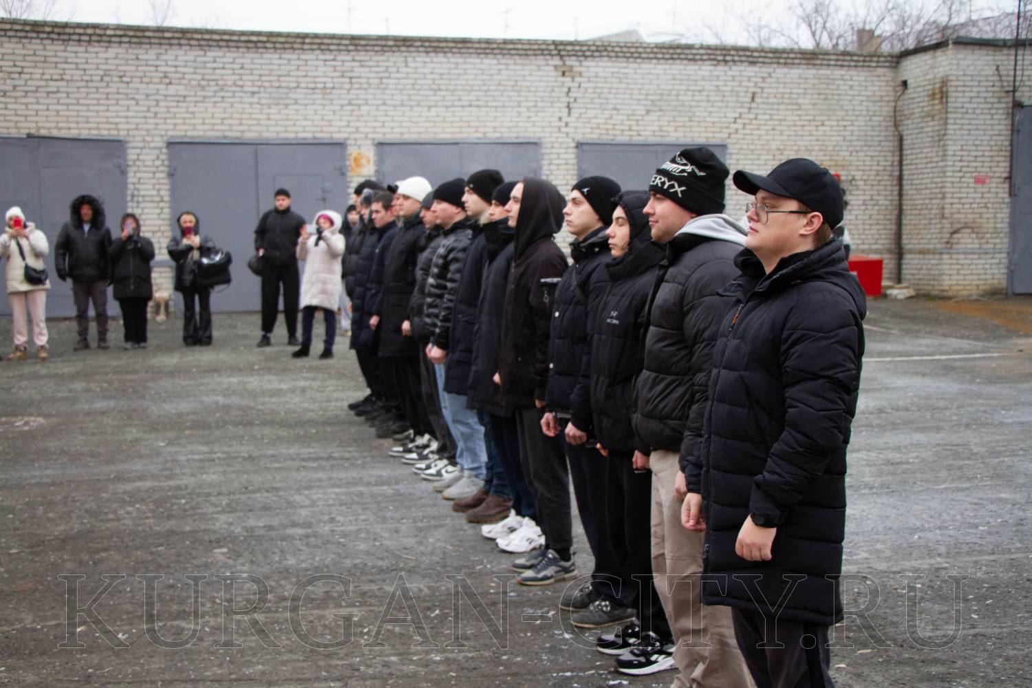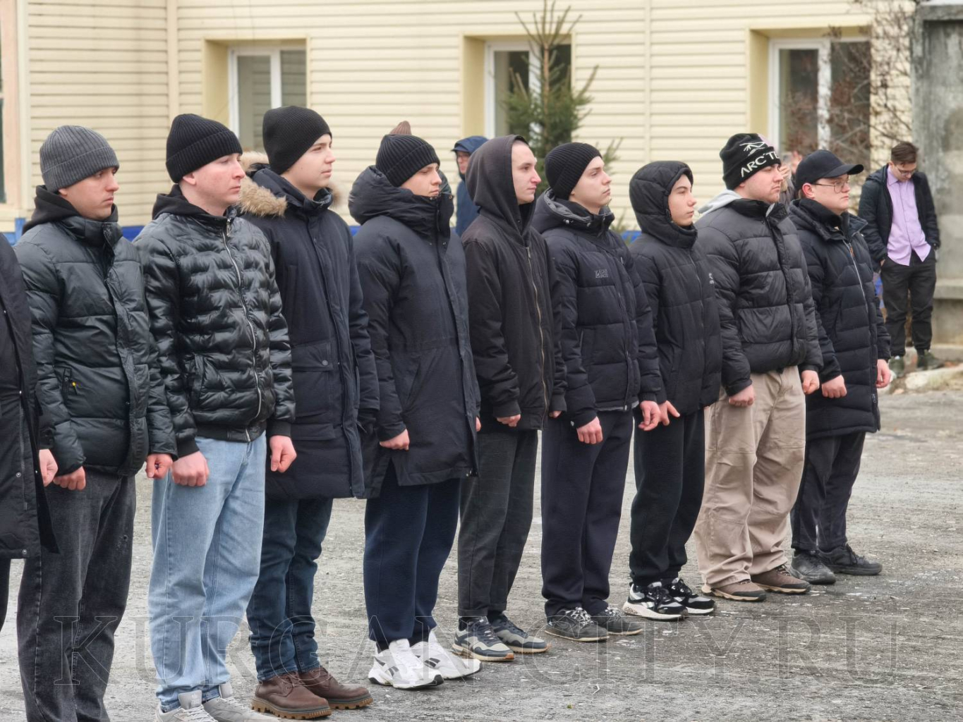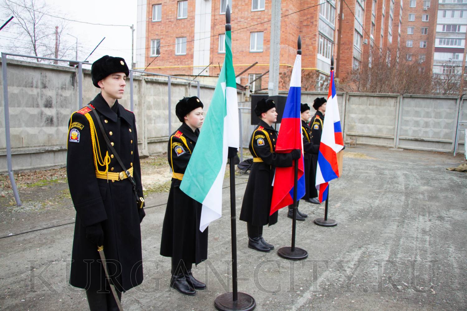 Традиционно перед началом торжественного мероприятия для призывников прозвучала команда «Равняйсь! Смирно!». Знаменная группа школы № 75 имени Героя России Евгения Викторовича Родькина внесла флаги РФ, Вооруженных Сил и города Кургана. Во время церемонии отмечалось, что призывники вступают в ряды Вооруженных Сил РФ в знаменательный Год защитника Отечества, что имеет особую значимость в год празднования 80-летия Победы в Великой Отечественной войне.