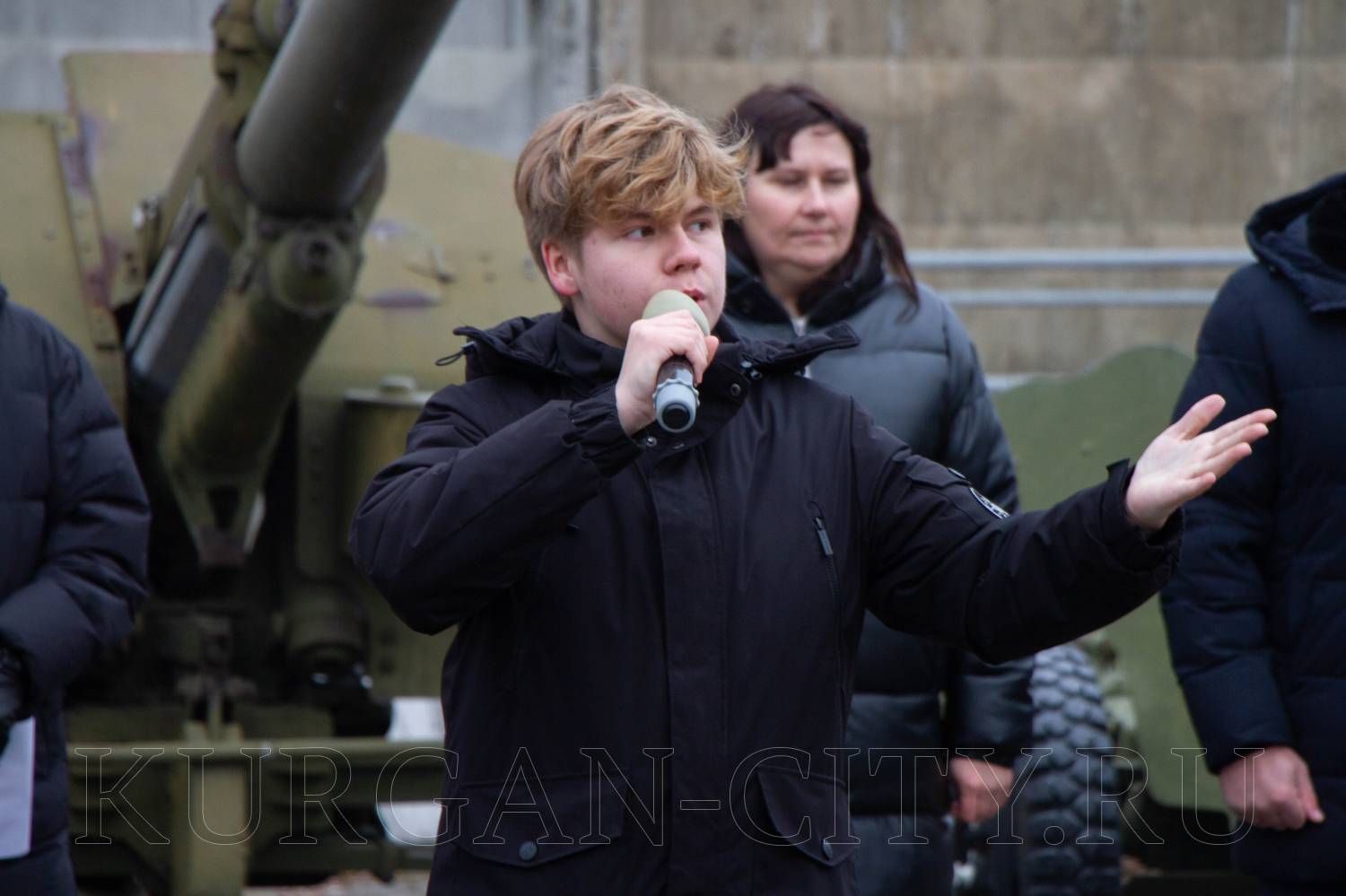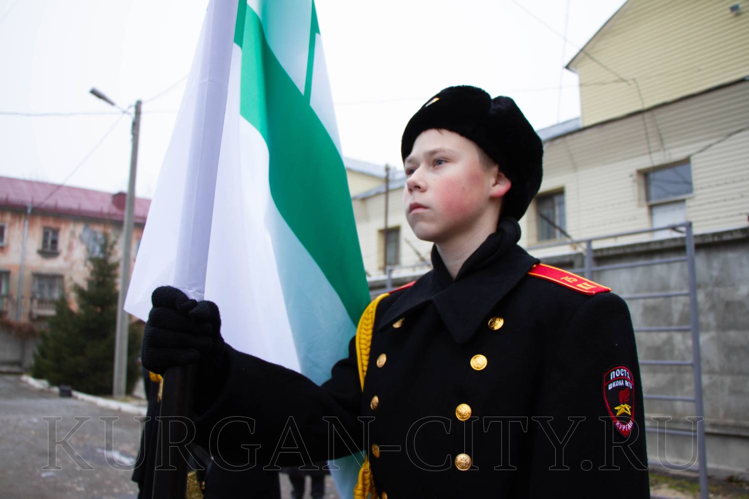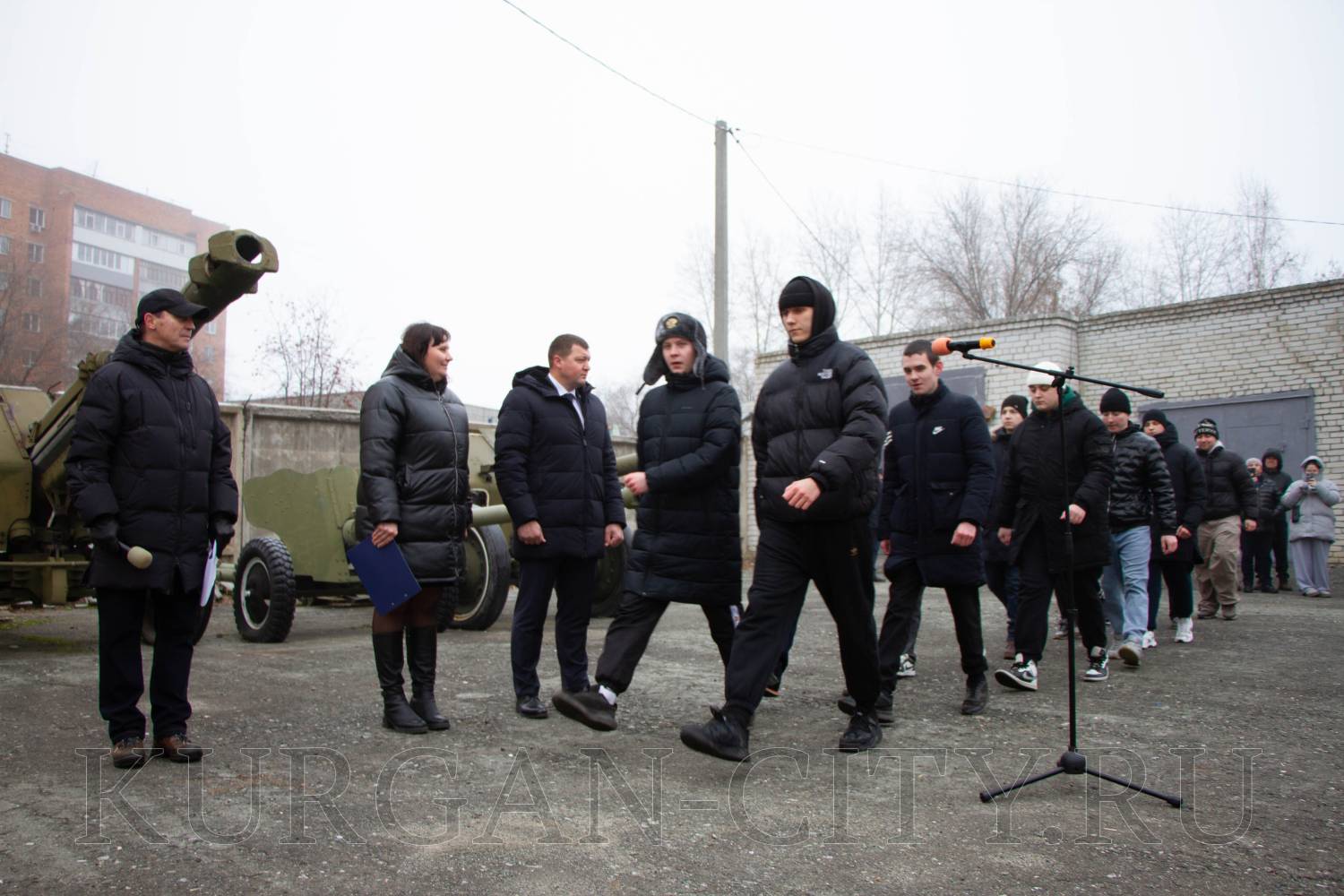 Традиционно перед началом торжественного мероприятия для призывников прозвучала команда «Равняйсь! Смирно!». Знаменная группа школы № 75 имени Героя России Евгения Викторовича Родькина внесла флаги РФ, Вооруженных Сил и города Кургана. Во время церемонии отмечалось, что призывники вступают в ряды Вооруженных Сил РФ в знаменательный Год защитника Отечества, что имеет особую значимость в год празднования 80-летия Победы в Великой Отечественной войне.