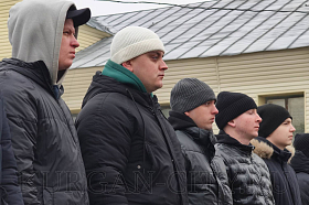 Поздравил с первым днем военной службы молодых призывников старший помощник начальника отделения подготовки и призыва граждан на военную службу военного комиссариата города Кургана, ветеран боевых действий подполковник в отставке Сергей Палеев: «От ветеранов военной службы и ветеранов боевых действий хочу пожелать, чтобы год пролетел незаметно, и вы стали настоящими мужчинами. Вернувшись домой, родные и близкие заметят ваше преображение в лучшую сторону и возмужание. Берегите друг друга, слушайтесь отцов-командиров и выполняйте приказы. Удачи!», - обратился Сергей Сергеевич.