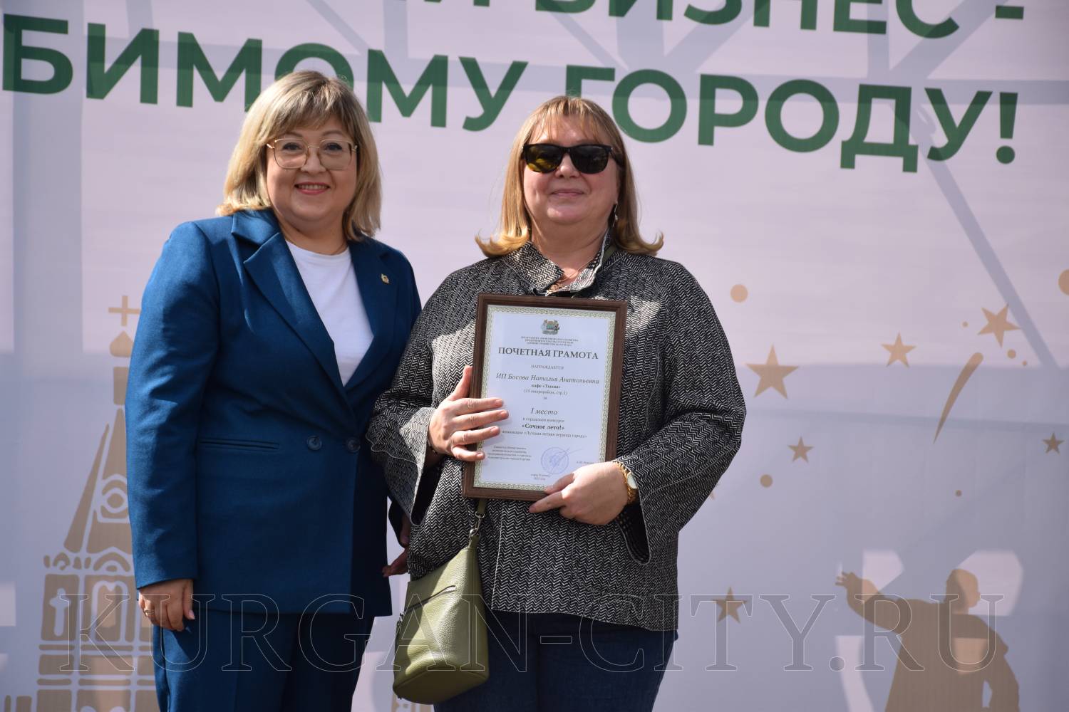 На праздничной площадке были подведены итоги и награждены победители городского конкурса на лучшее оформление объектов торговли и общественного питания «Сочное лето!». Напомним, что в конкурсе принимали участие субъекта малого и среднего предпринимательства.