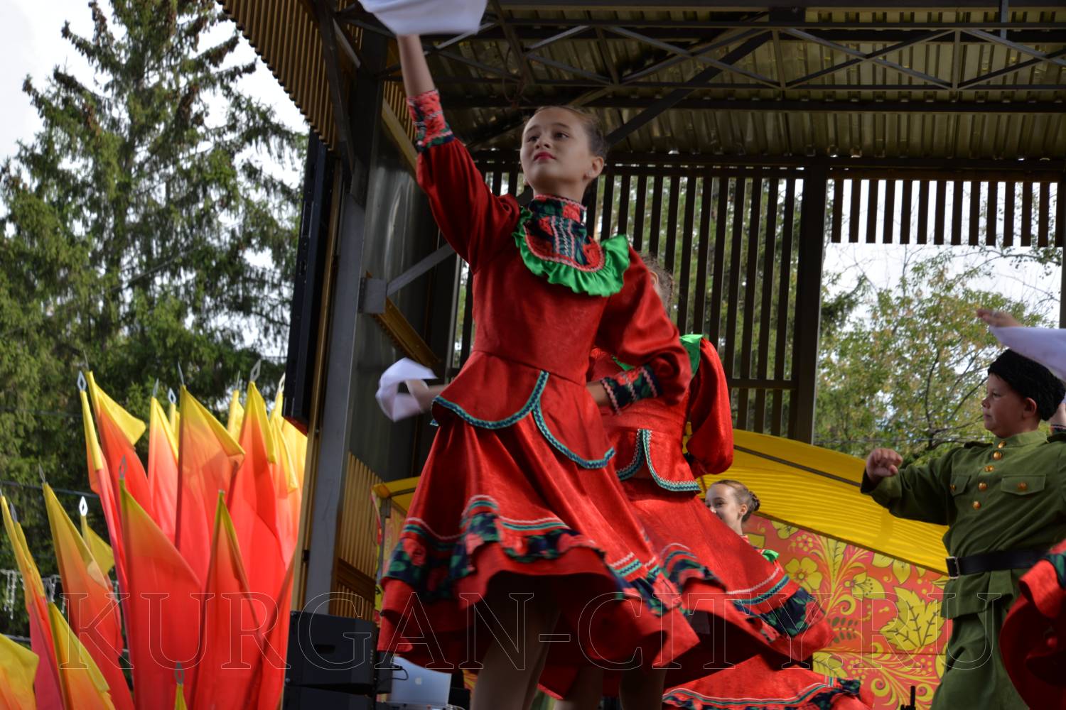 В ЦПКиО была организована большая праздничная программа с розыгрышем призов и подарков, веселыми викторинами и конкурсами. «Традиции – гордость Кургана!» - под таким названием в ЦПКиО прошёл праздничный концерт Образцового коллектива ансамбля танца «Светлячок», перед началом которого участников Дня города приветствовал временно исполняющий обязанности руководителя аппарата администрации города Кургана Павел Валуев. Он поздравил курганцев с днём рождения любимого города. «Вот уже 346 лет мы отмечаем и особенно гордимся тем, что в этом году Указом Президента нашему городу присвою звание «Город трудовой доблести». Но самое главное, что наш город уже прошёл трехвековой путь развивается дальше. Когда-то Курган был маленьким, а сейчас это перспективный город, где имеется всё для отдыха и учебы. В городе развиваются крупные предприятия и нам есть куда стремиться», - добавил Павел Александрович.