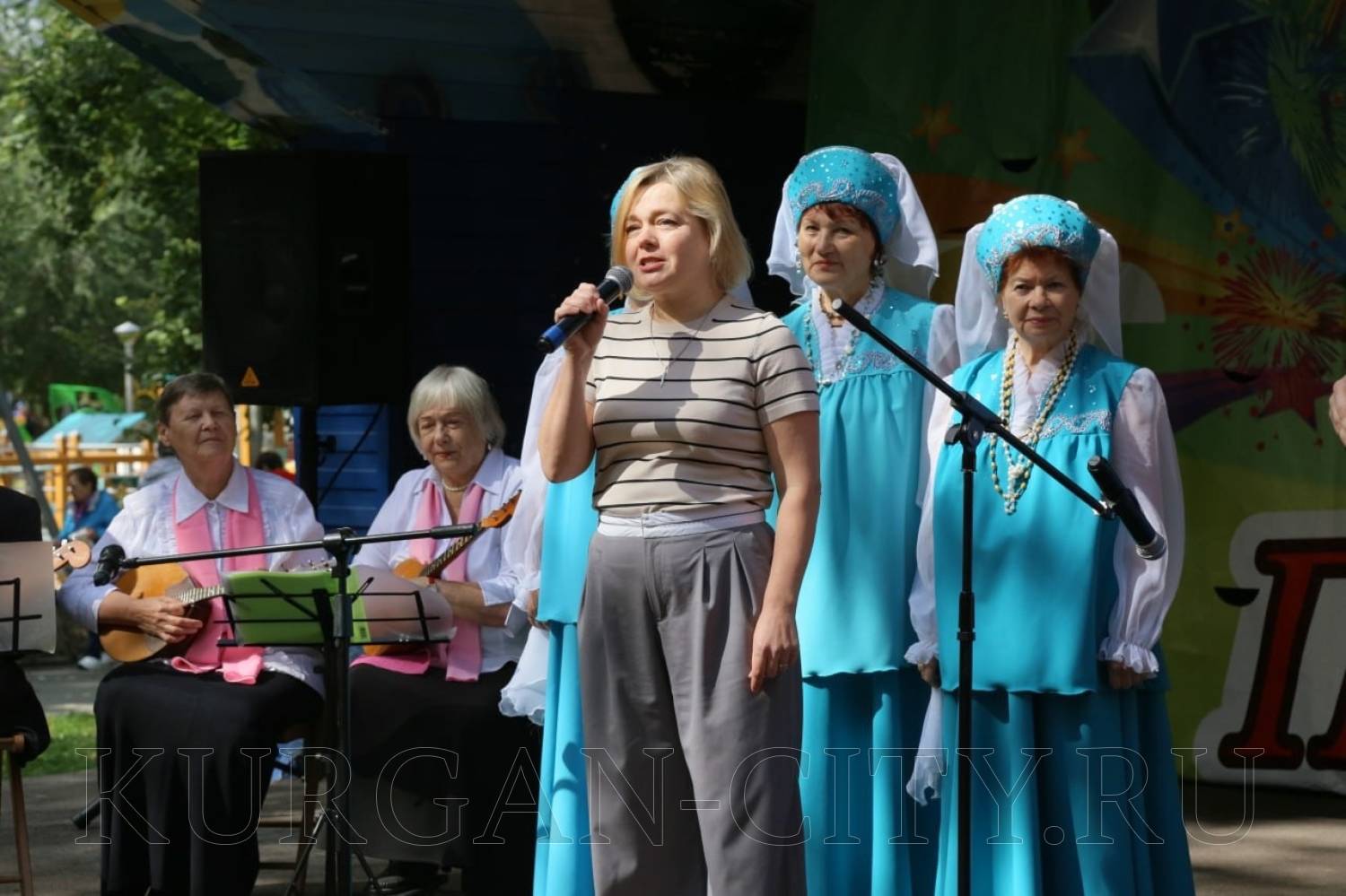 В Детском парке с большим чувством и позитивом представили свою концертную программу вокальные ансамбли от Курганского совета ветеранов. На открытии концертной программы «Пою тебе, мой край родной!» выступила с напутственными словами директор департамента архитектуры, строительства и земельных отношений администрации Кургана Нина Юшкова, которая напомнила, что праздник проходит в год 80-летия Победы в Великой Отечественной войне, в год защитника Отечества и приурочен к присвоению городу Кургану почётного звания «Город трудовой доблести». «За годы становления у Кургана появилось много добрых традиций, которые бережёт старшее поколение, ветераны передают лучшие традиции молодому поколению горожан. Хотелось, чтобы в этот праздничный день каждый ощутил себя частью большой дружной семьи, почувствовал гордость за город и его успехи, которых у Кургана достаточно. Все мы видим, как хорошеет Курган, обновляется. Желаю родному городу развития и процветания, а каждому из вас крепкого здоровья, отличного настроения и уверенности завтрашнем дне!», - отметила Нина Владимировна.