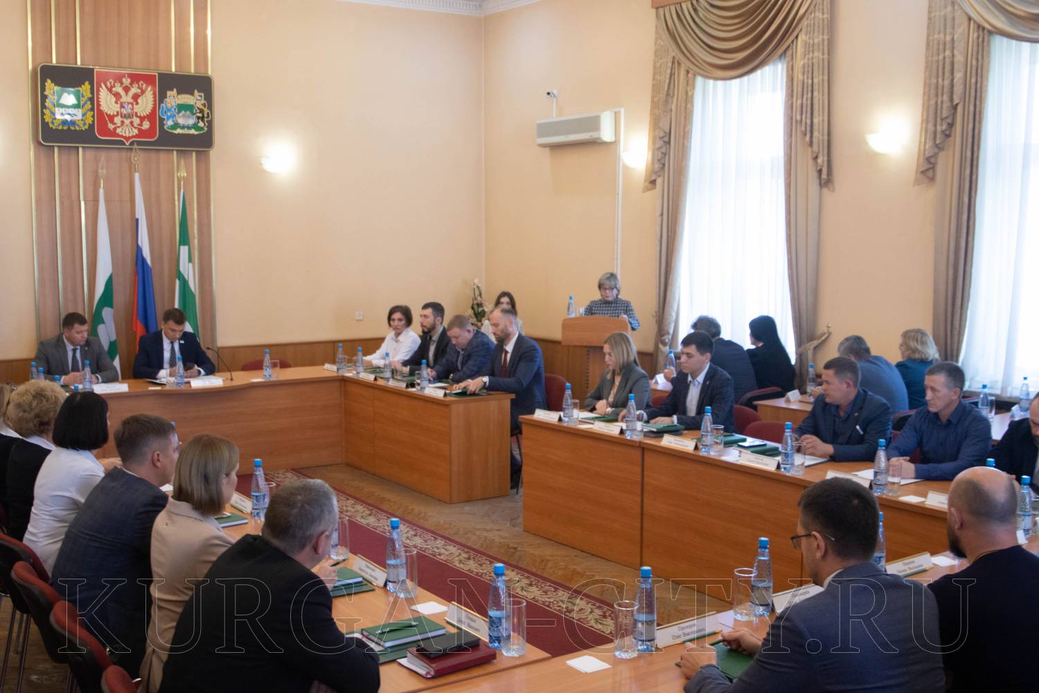 Началось заседание с оглашения итогов выборов в городскую Думу. Председатель Западной территориальной избирательной комиссии города Кургана Елена Недавняя сообщила, что выборы депутатов городской Думы, которые состоялись 8 сентября 2024 года, на всех 13 одномандатных избирательных округах и по единому избирательному округу признаны состоявшимися и действительными. В их организации была задействована Западная территориальная избирательная комиссия города Кургана. Также были сформированы 4 окружных избирательных комиссии и 133 участковых избирательных комиссий, 3 из которых были образованы в местах временного пребывания избирателей. На 79 избирательных участках голосование проводилось с использования КОИБов.