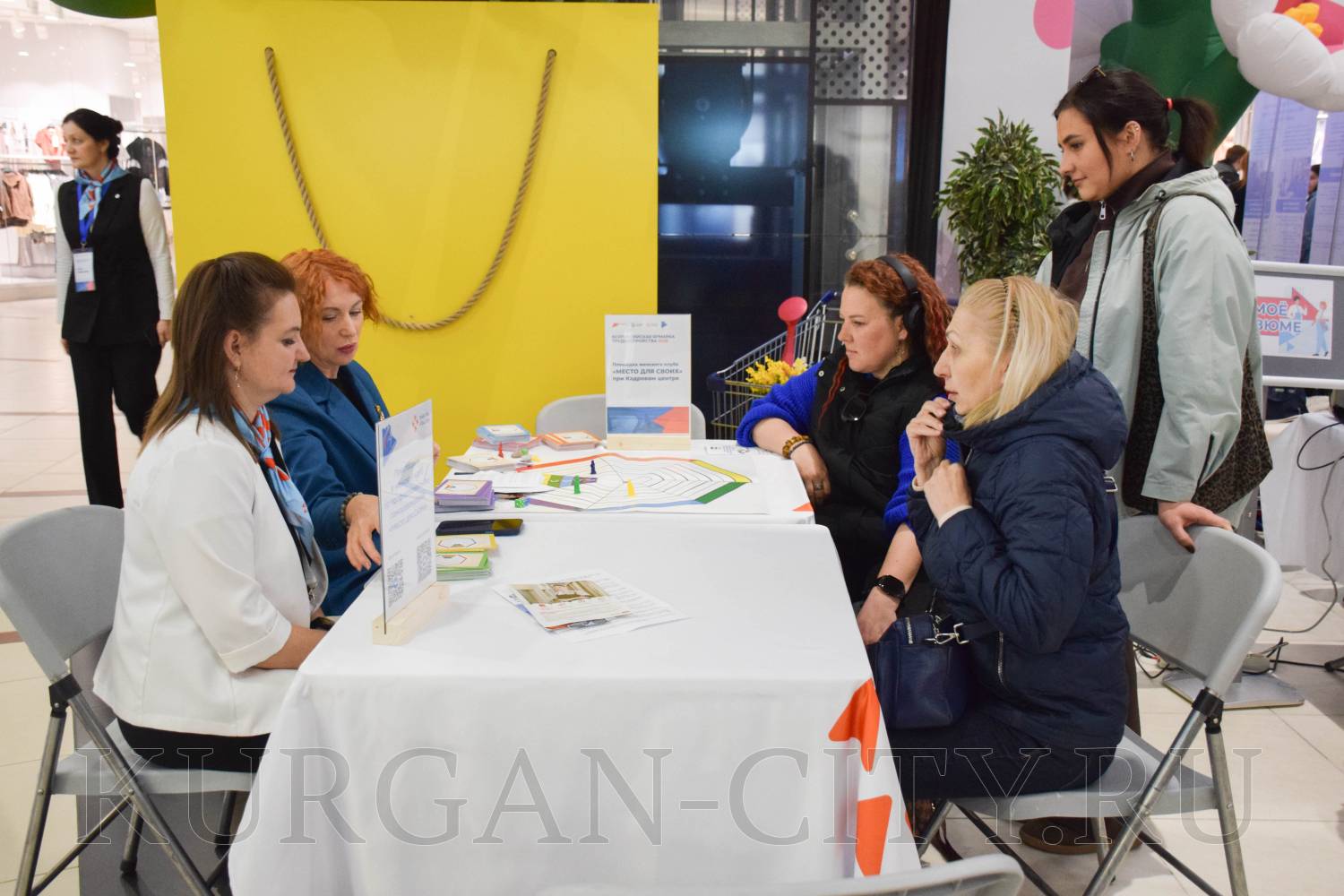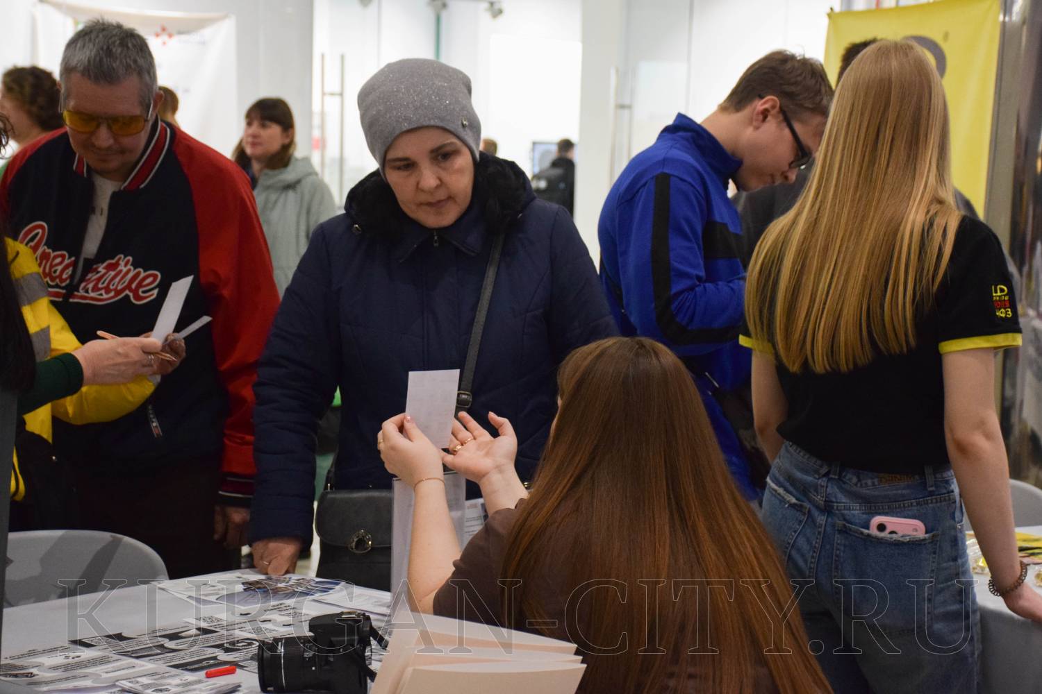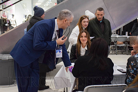 К площадке администрации города Кургана подходило немало соискателей. Здесь граждане получали консультации начальника управления муниципальной службы кадров и профилактики коррупционных правонарушений аппарата администрации города Юлии Назаровой и её заместителя Яны Старостиной. Горожане обращались по направлениям юридического сопровождения, искали работу бухгалтера, водителя. Мама студентки последнего курса колледжа уточняла, может ли её дочь трудоустроиться в администрацию города. Юлия Назарова разъяснила, что в администрации города студенты могут пройти стажировку с последующим трудоустройством после окончания учебы.