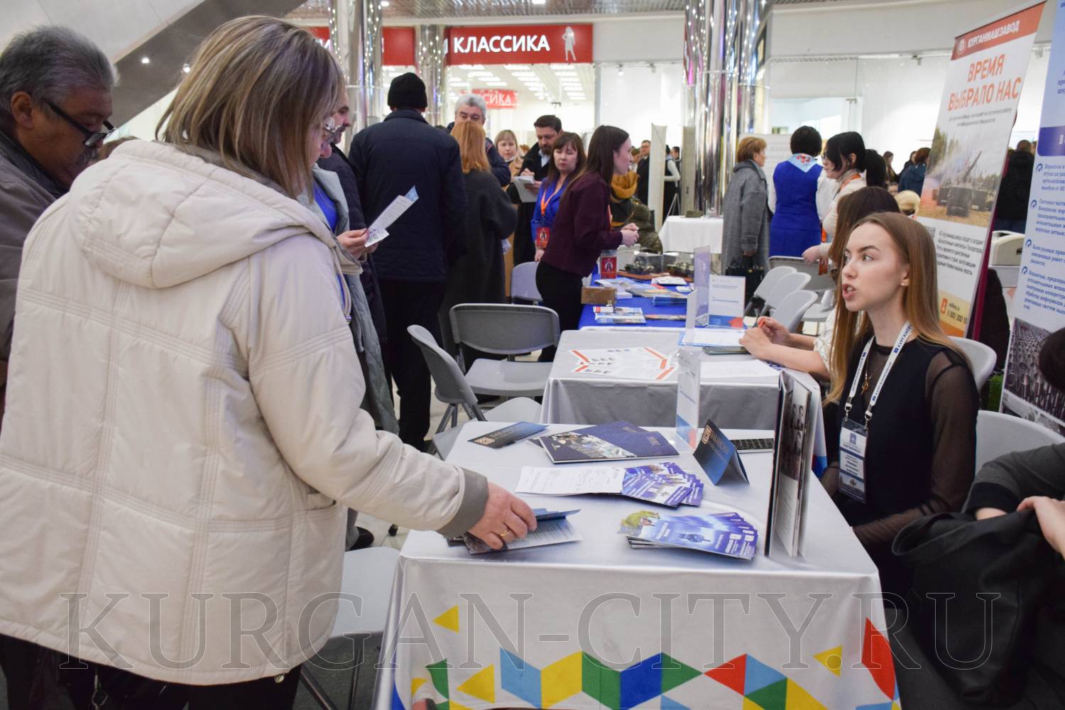 Сегодня в Кургане в рамках регионального этапа Всероссийской ярмарки трудоустройства «Работа России. Время возможностей» прошла ярмарка вакансий предприятий Кургана и Курганской области. Мероприятие было организовано на площадке торгово-развлекательного центра «ГиперСити». Свои вакансии предложила и администрация города Кургана.