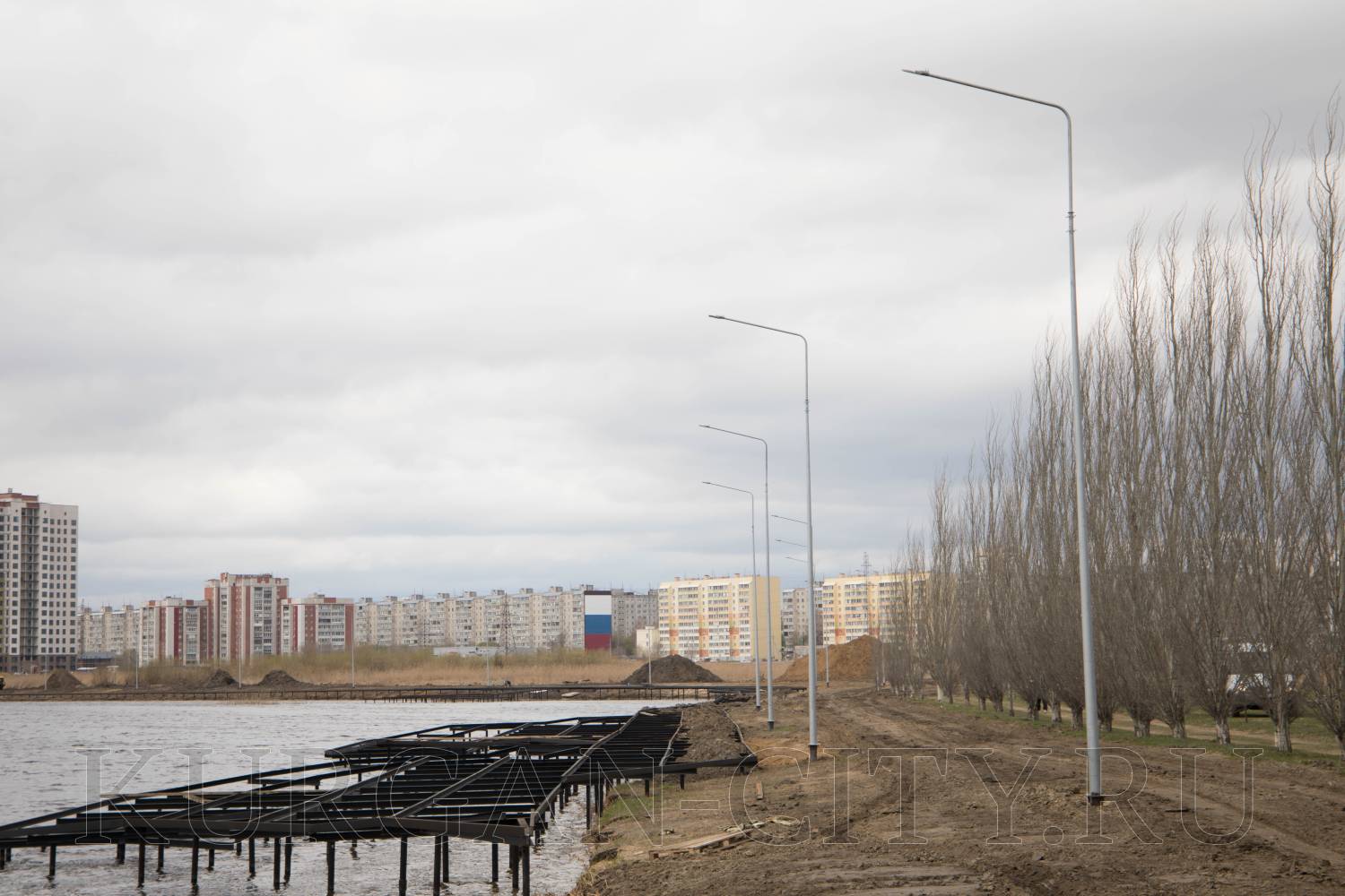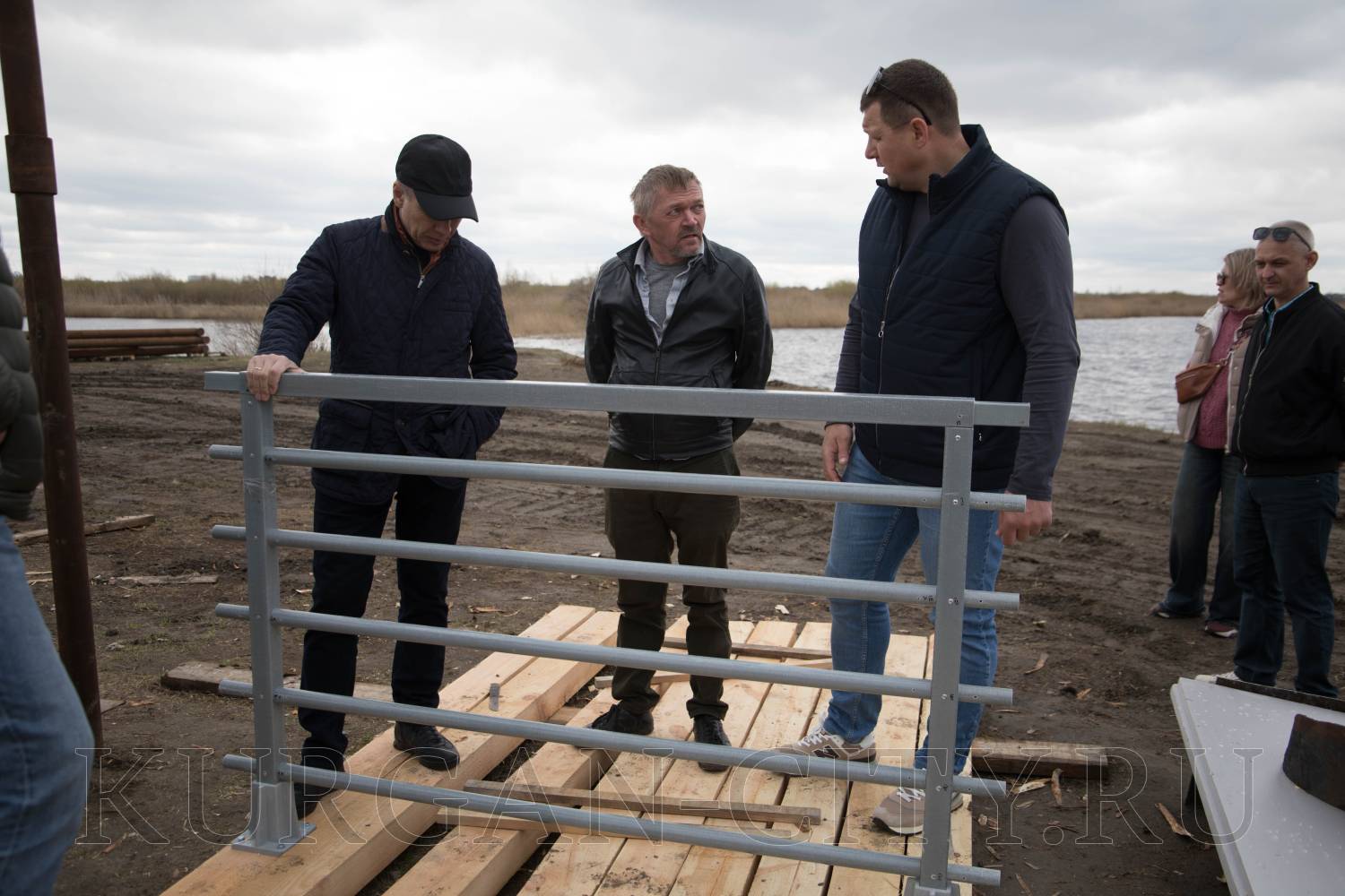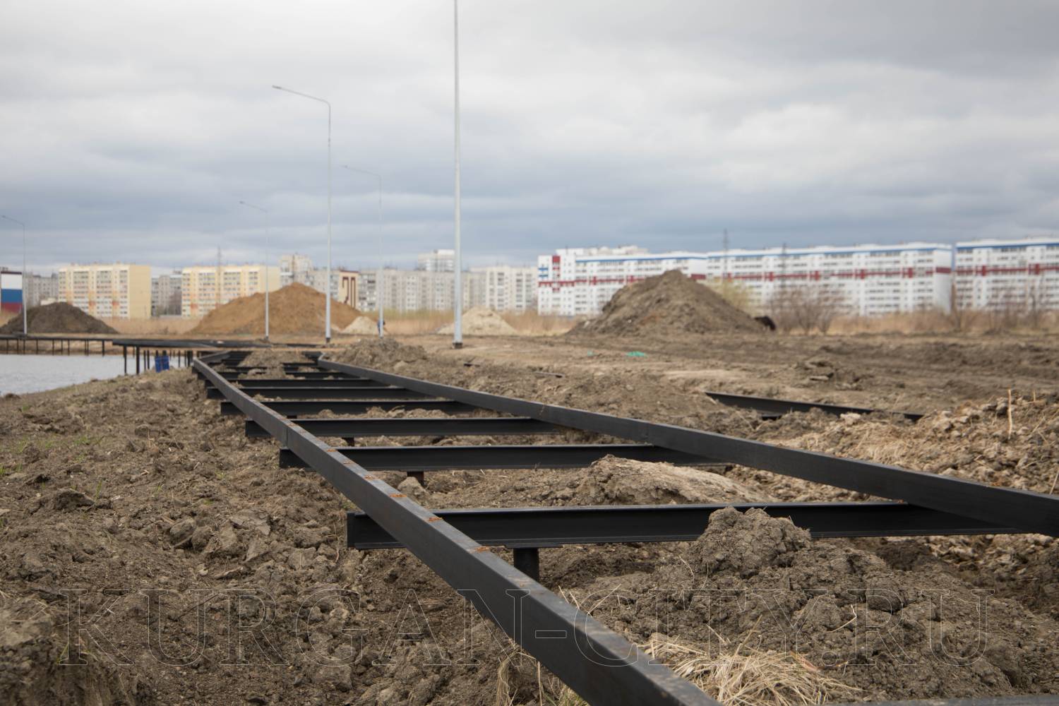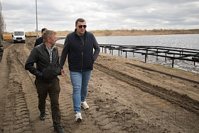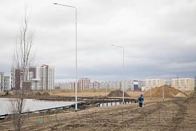 Из объектов благоустройства были проверены работы на озере Черное в Заозерном микрорайоне. В настоящий момент подрядчик устанавливает вдоль береговой линии металлическую обрешетку, на которую в последующем будет укладываться деревянный настил.