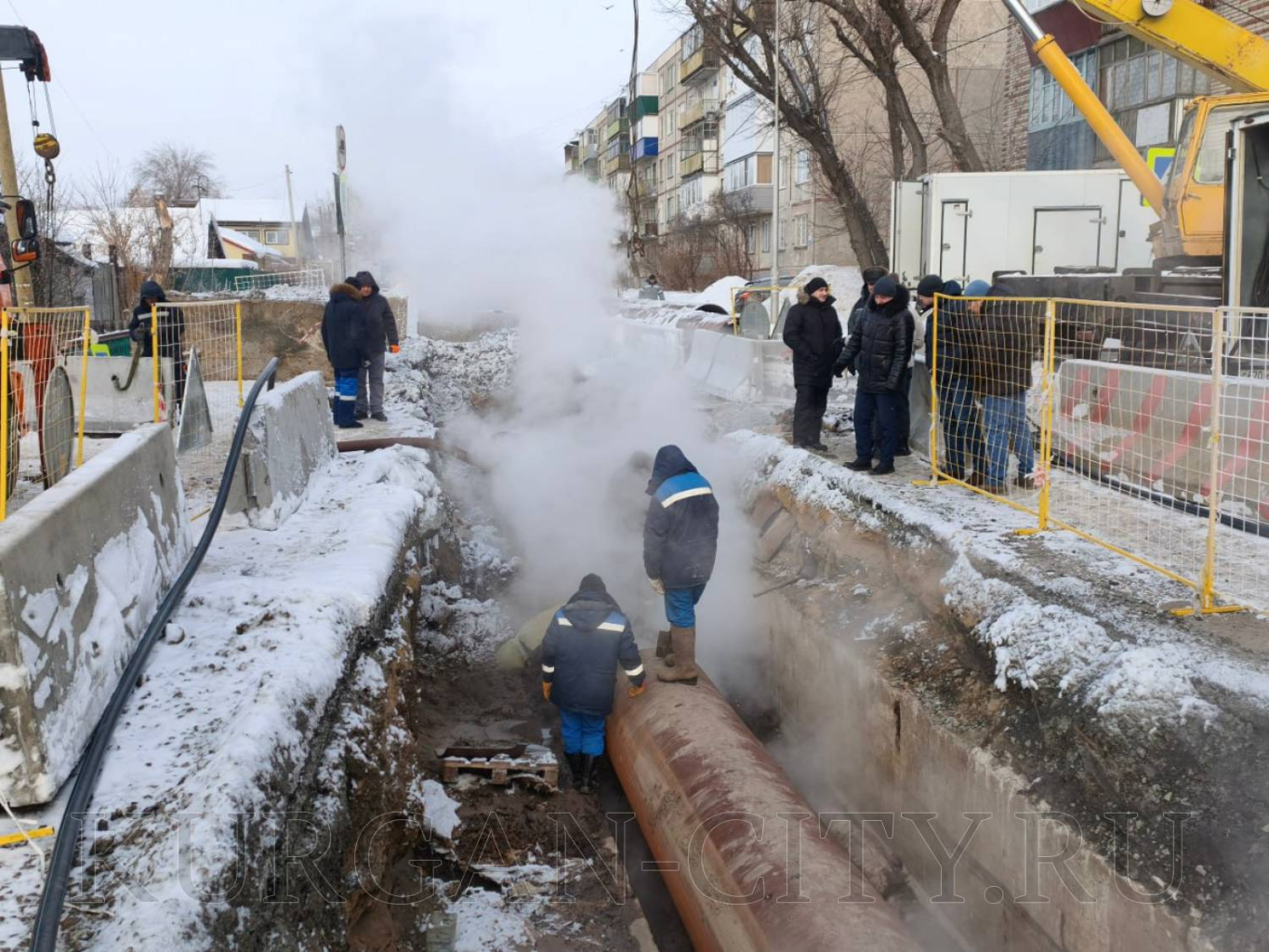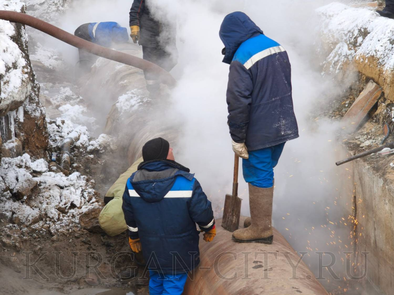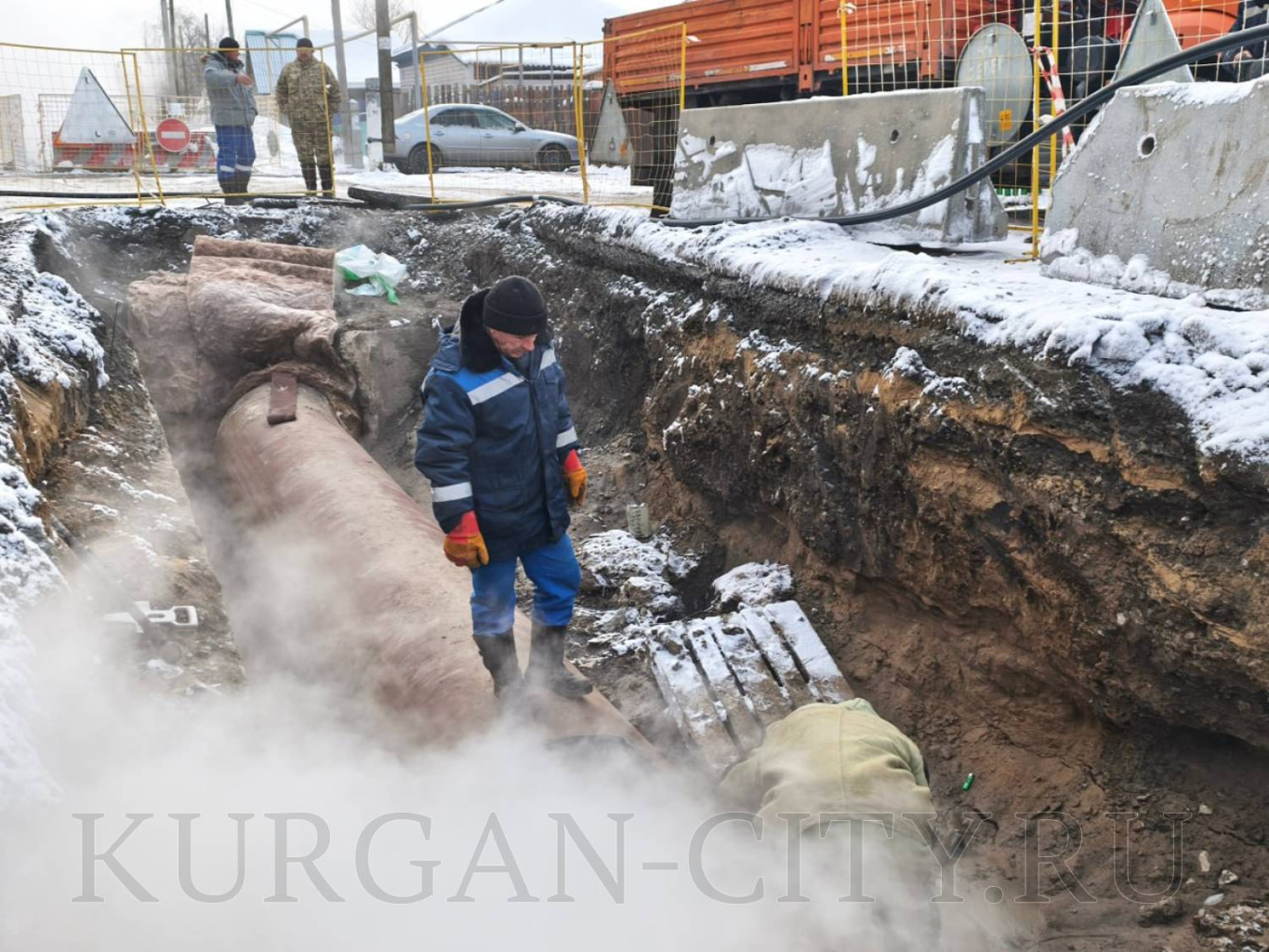 Бригады «Курганской генерирующей компании» проводят плановые работы по устранению дефекта на магистральном трубопроводе Север 2 по ул. Рабоче-Крестьянской.