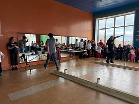 Еще одним этапом стала дагестанская народная игра «Шапка канатоходца» — эстафета на равновесие, ловкость и координацию. Участники проходили трассу по узкой деревянной опоре, передавая эстафету друг другу.