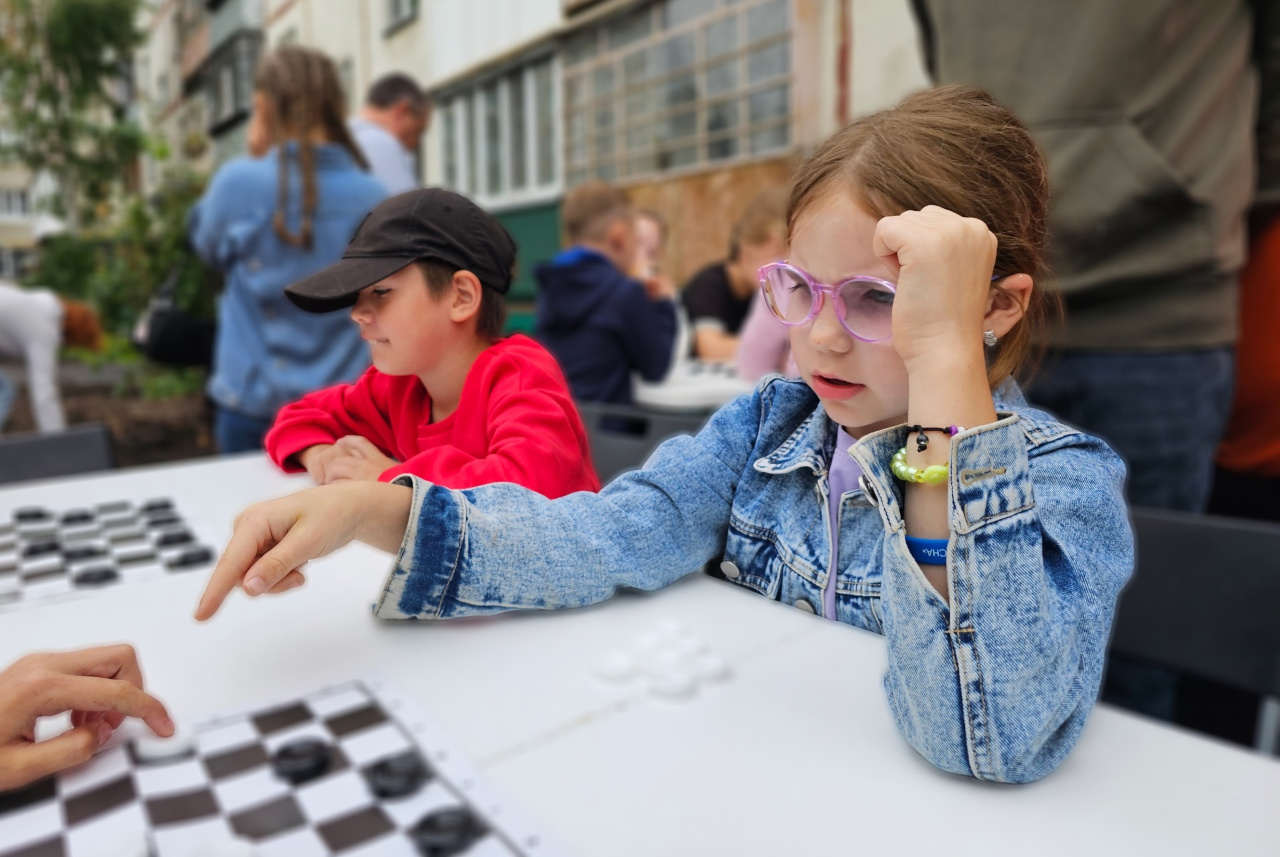 Во дворе дома номер 110 по улице Гоголя прошел турнир по шашкам. Организовала увлекательное мероприятие для маленьких горожан депутат Курганской городской Думы Анастасия Денисенко.